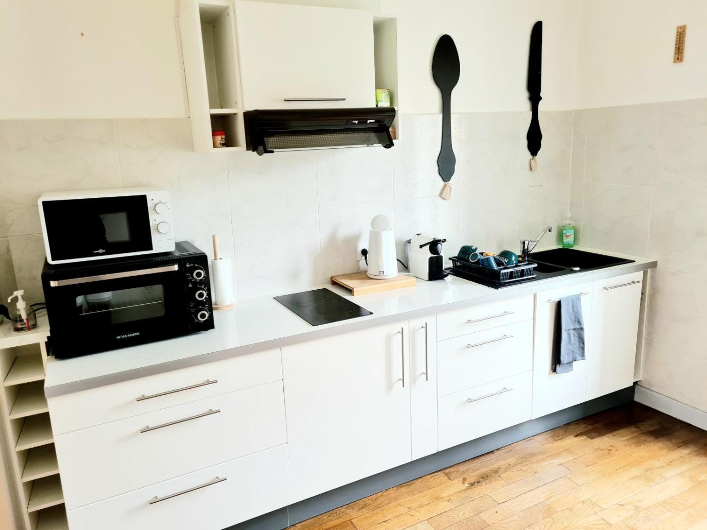 Appartement 1 Chambre. Featuring a private entrance, this spacious apartment also is comprised of 1 bedroom, a seating area and 1 bathroom with a walk-in shower and a hairdryer. The well-fitted kitchen features a stovetop, a refrigerator, kitchenware and an oven. The air-conditioned apartment offers a flat-screen TV with streaming services, a washing machine, a coffee machine, a dining area as well as garden views. The unit offers 1 bed.