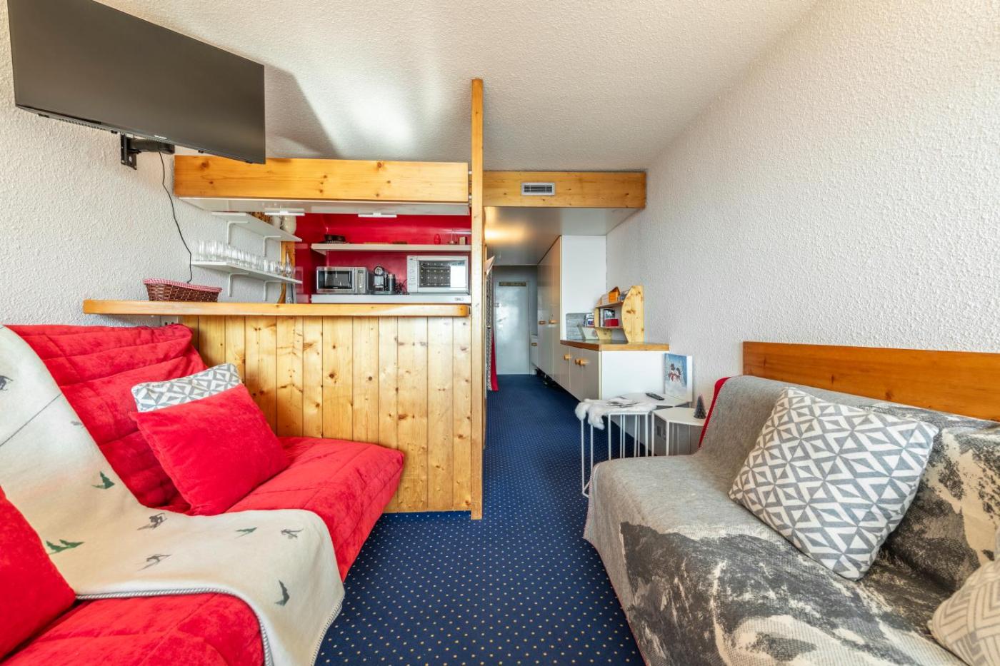 Appartement 1 Chambre. This apartment consists of 1 living room, 1 separate bedroom and 1 bathroom with a bath and free toiletries. The well-equipped kitchen features a stovetop, a refrigerator, a dishwasher and kitchenware. Featuring a balcony with mountain views, this apartment also provides a coffee machine and a flat-screen TV. The unit offers 5 beds.