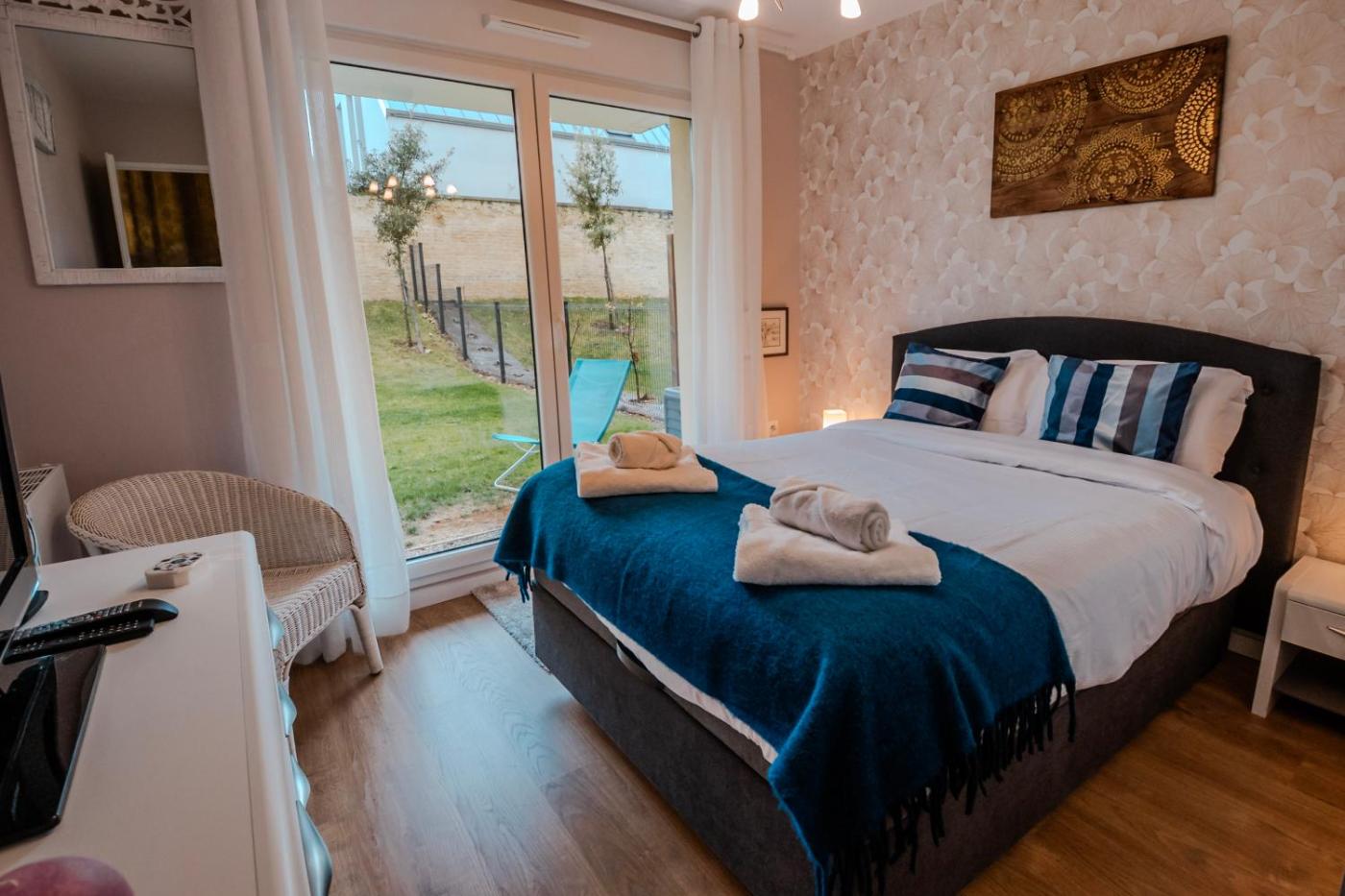 Appartement 2 Chambres de Luxe avec Vue sur le Jardin. Featuring 2 bedrooms, this spacious apartment offers 1 bathroom with a shower, a seating area and terraceyou can relax. In the well-fitted kitchen, guests will find a stovetop, a refrigerator, a dishwasher and kitchenware. This apartment features a washing machine, flat-screen TV with satellite channels, garden views, as well as chocolate for guests. The unit has 2 beds.