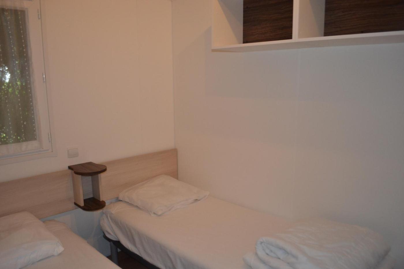 Mobile Home 2 Chambres. Doté d’une entrée privée, ce mobile home comprend un salon, 2 chambres séparées ainsi qu’une salle de bains avec douche. La cuisine bien équipée est munie de plaques de cuisson, d’un four, d’un réfrigérateur et d’ustensiles. Ce mobile home bénéficie également d’un barbecue. Ce mobile home dispose dune terrasse donnant sur le jardin, dune machine à café et dune télévision par câble à écran plat. Ce logement comporte 4 lits. ;
