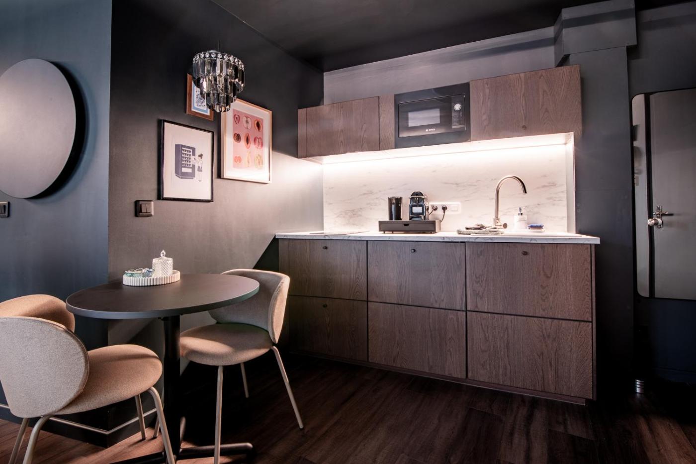 Cet appartement comporte 1 chambre, une télévision à écran plat, ainsi qu’une cuisine.
