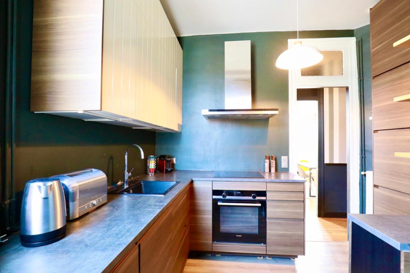 Cet appartement se compose de 2 chambres, dun salon, dune cuisine entièrement équipée avec un réfrigérateur et une machine à café, ainsi que de 1 salle de bains avec une baignoire ou une douche et des articles de toilette gratuits. Des serviettes et du linge de lit sont à disposition.