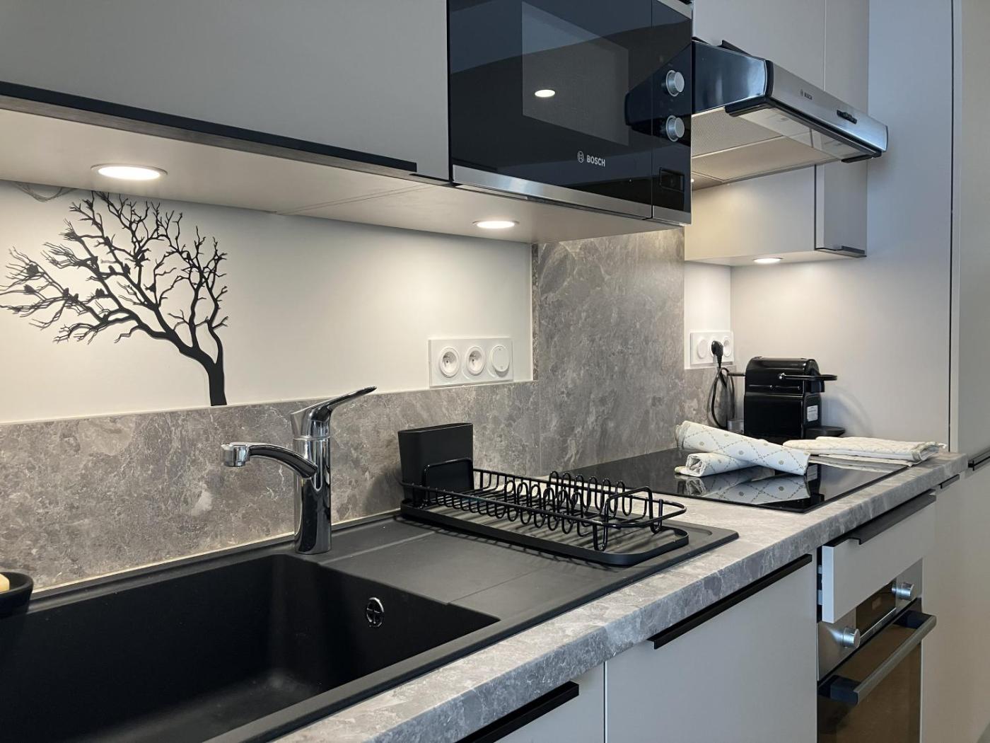 Cet appartement se compose de 2 chambres, dun salon, dune cuisine entièrement équipée avec un réfrigérateur et une machine à café, ainsi que de 1 salle de bains avec une douche et un sèche-cheveux. Des serviettes et du linge de lit sont à votre disposition.