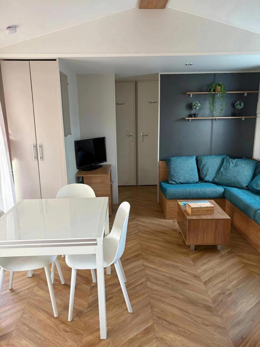 Mobile Home. Boasting a private entrance, this air-conditioned mobile home comes with 1 living room, 3 separate bedrooms and 2 bathrooms with a shower and a hairdryer. In the kitchen, guests will find a stovetop, a refrigerator, a dishwasher and kitchenware. Featuring a terrace with garden views, this mobile home also features a washing machine and a TV. The unit has 5 beds.