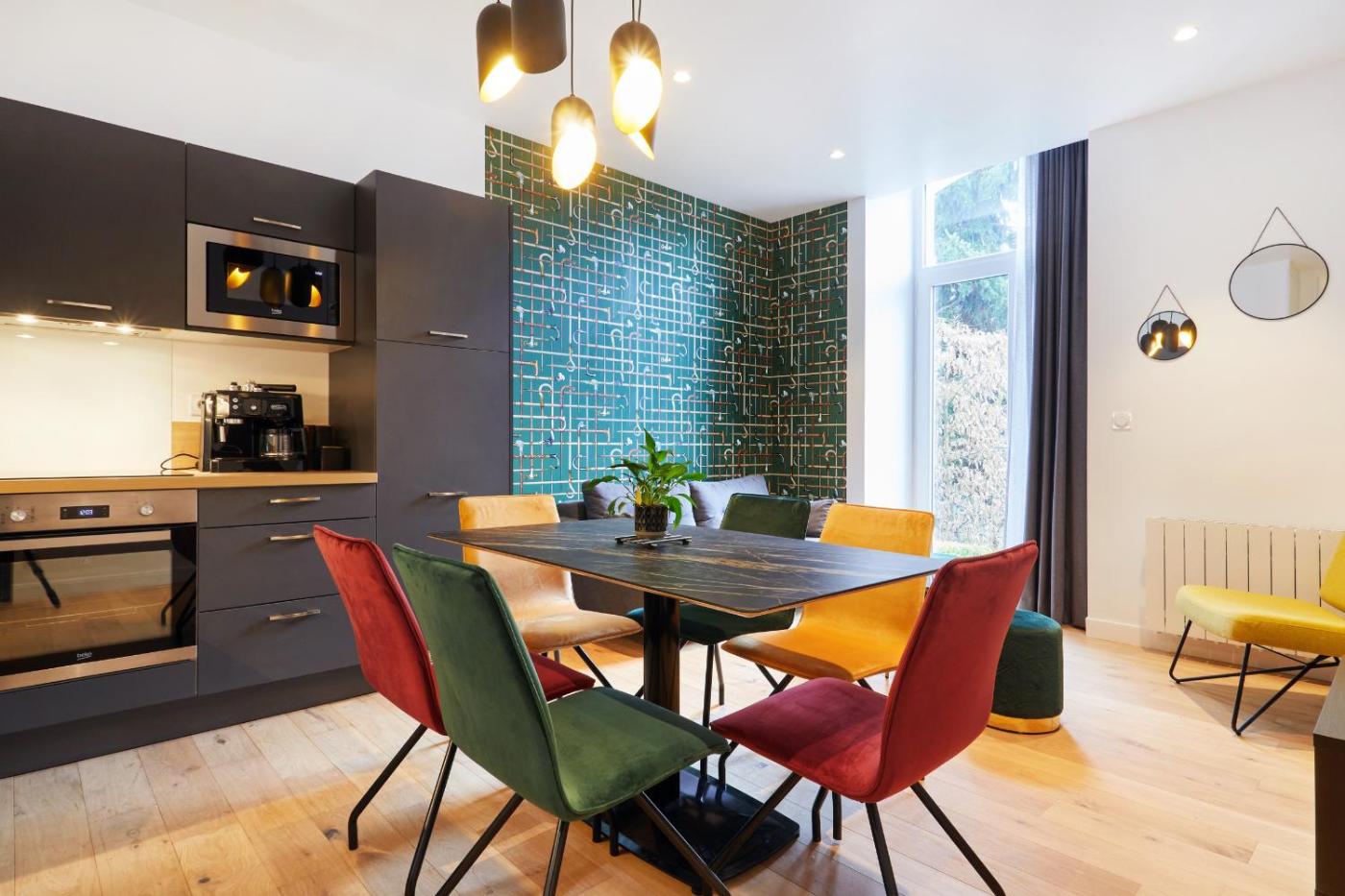 Appartement Deluxe. Cet appartement comprend une entrée privée, un salon et 2 chambres séparées. La salle de bains est pourvue d’une douche et d’un sèche-cheveux. La cuisine entièrement équipée est munie de plaques de cuisson, d’un réfrigérateur et d’un lave-vaisselle. Des ustensiles de cuisine sont fournis. Offrant une vue sur la ville, cet appartement insonorisé dispose de parquet, d’un coin salon avec une télévision à écran plat et d’un plateaubouilloire. Ce logement comporte 2 lits. ;