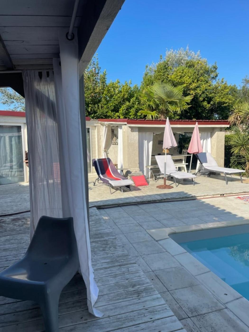 En plus de la piscine extérieure, l’établissement Le Chai Maison de charme pour tribu joyeuse possède une terrasse.