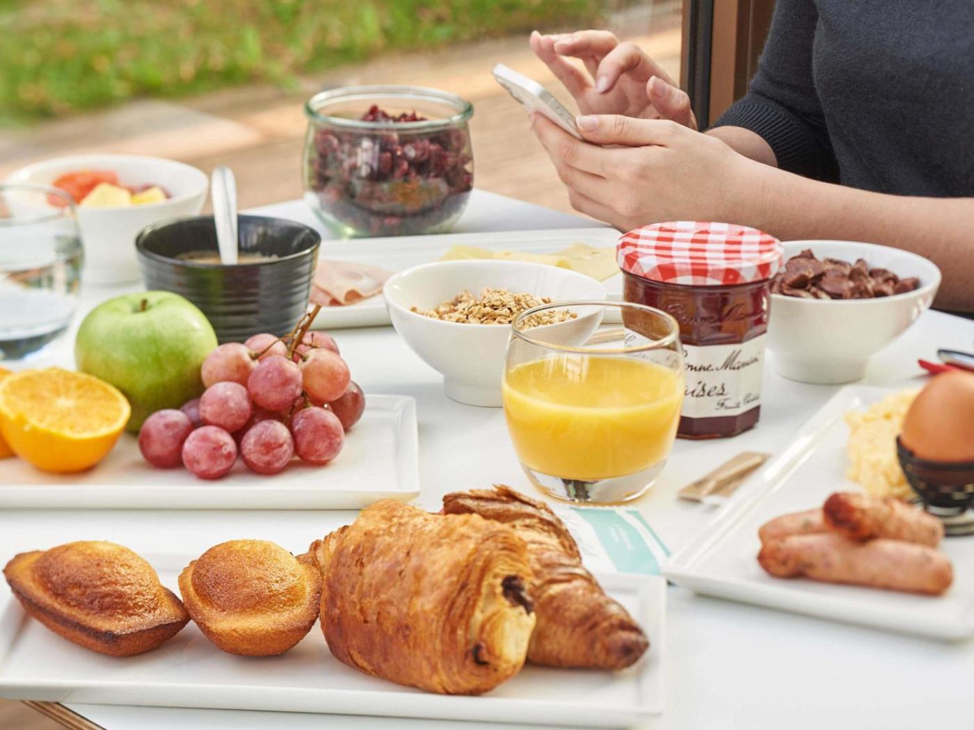 Vous dégusterez chaque matin un petit-déjeuner buffet composé daliments sucrés et salés, notamment des œufs, de la salade de fruits, des yaourts, des jus de fruits, des viennoiseries cuites sur place et des madeleines fraîches. Une boisson chaude et un fruit à emporter sont également proposés. En dehors des horaires du buffet, vous aurez la possibilité de prendre un petit-déjeuner plus léger à partir de 4h00.