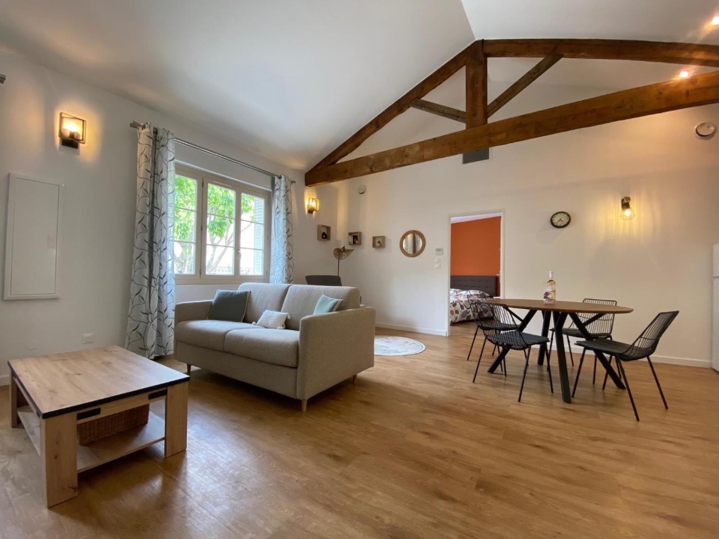Appartement 1 Chambre. Featuring a private entrance, this air-conditioned apartment consists of 1 living room, 1 separate bedroom and 1 bathroom with a shower and a hairdryer. The well-fitted kitchen features a stovetop, a dishwasher, an oven and a microwave. The apartment provides a washing machine, a seating area, a dining area, a flat-screen TV, as well as a quiet street view. The unit offers 2 beds.