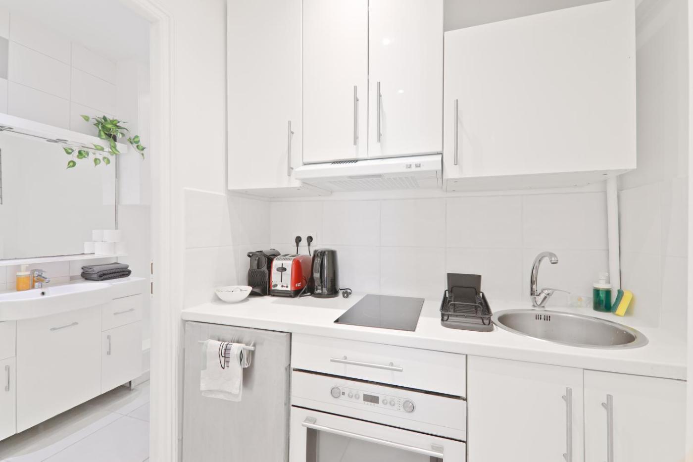 Appartement 1 Chambre. This apartment consists of 1 living room, 1 separate bedroom and 1 bathroom with a shower and free toiletries. In the kitchen, guests will find a stovetop, a refrigerator, kitchenware and an oven. The apartment provides a flat-screen TV with streaming services, a washing machine, soundproof walls, a tea and coffee maker as well as city views. The unit offers 3 beds.