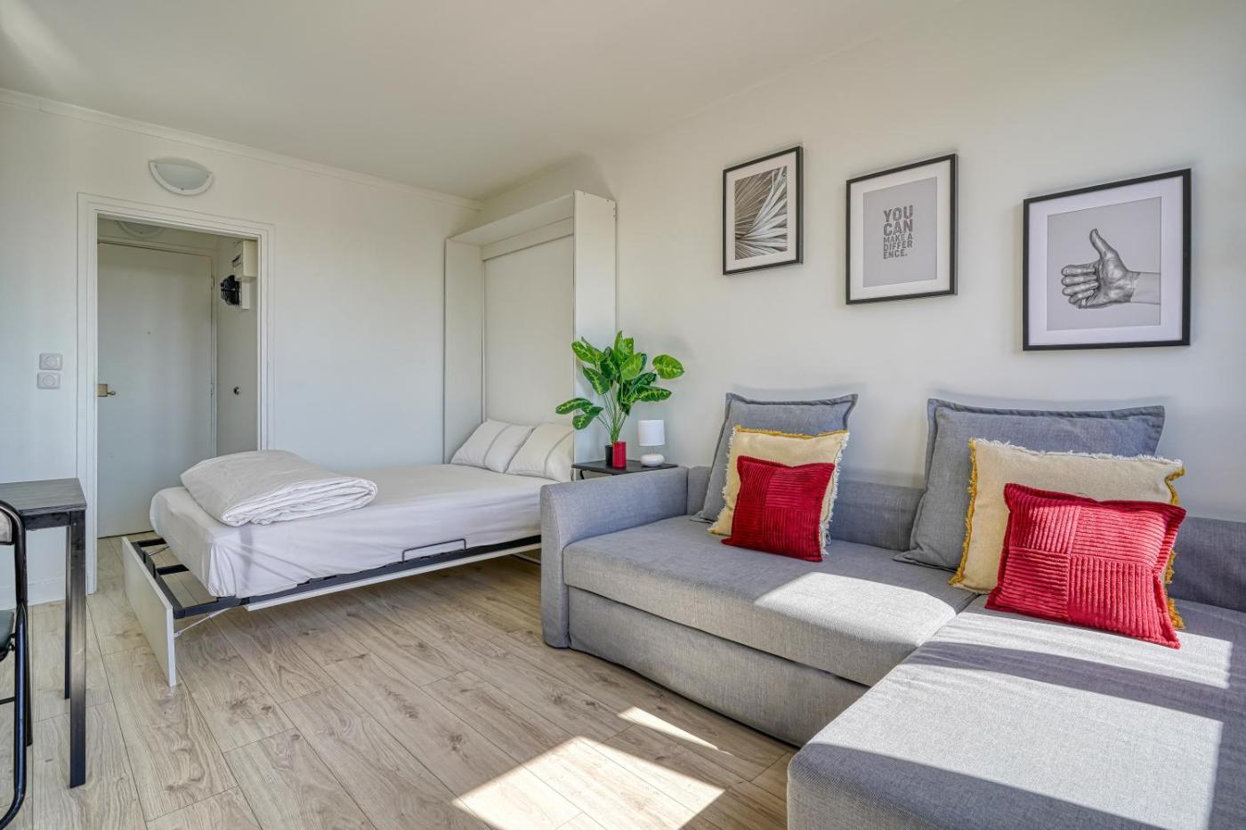 Appartement 1 Chambre. In the kitchen, guests will find a stovetop, a refrigerator, an oven and a microwave. This apartment has a washing machine, heating and a flat-screen TV. The unit has 2 beds.