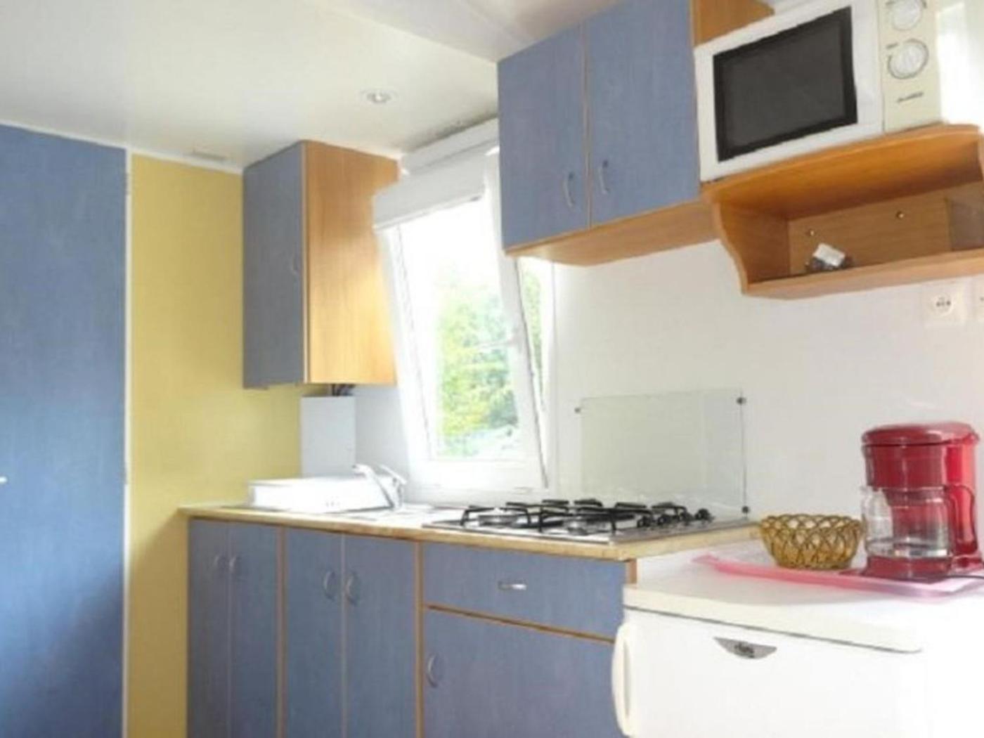 Mobile Home. Featuring a private entrance, this mobile home consists of 2 bedrooms, 1 bathroom and a kitchen. A kitchen equipped with a refrigerator, kitchenware and a microwave is available for cooking and storing food. The mobile home provides a coffee machine, a dining area, as well as a terrace and outdoor furniture.