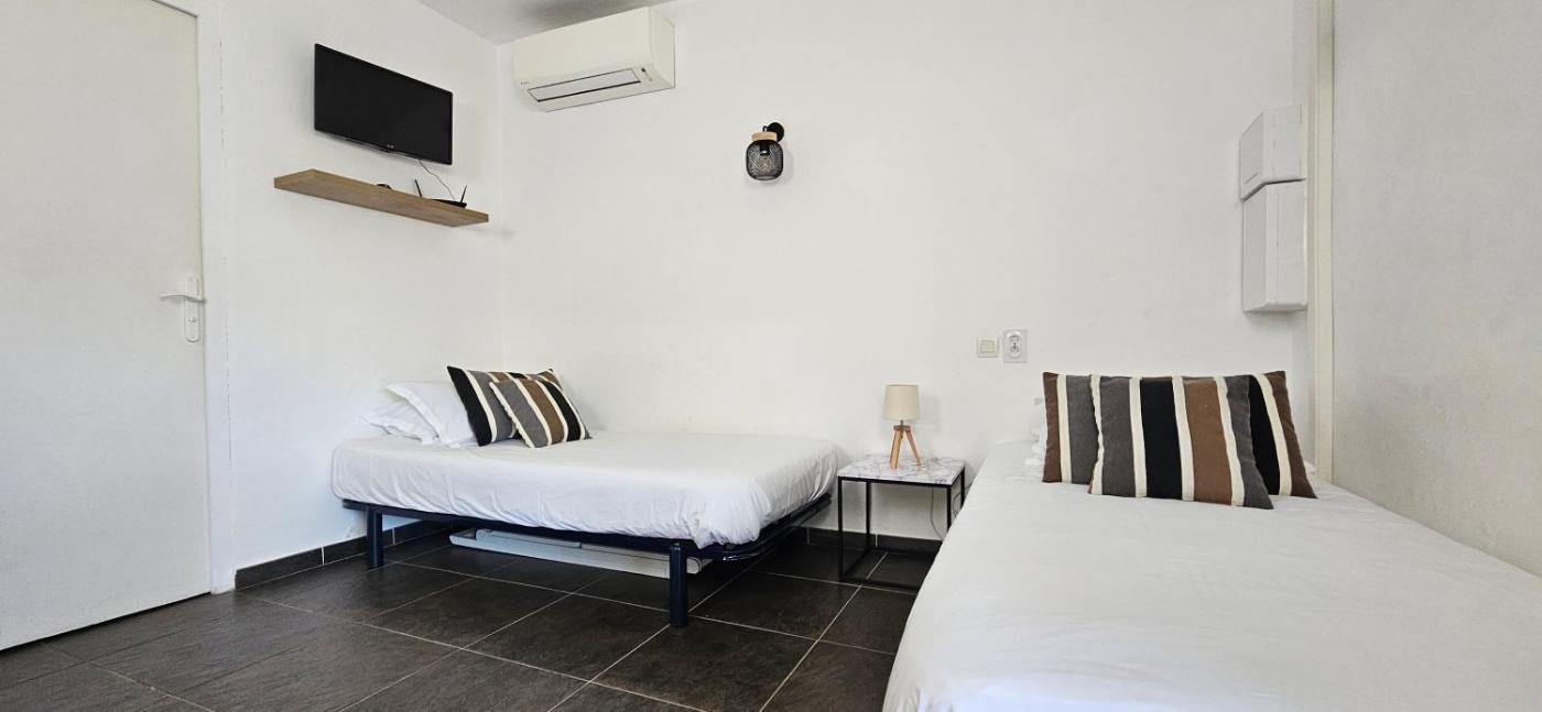 Appartement 1 Chambre. The pool with a view is the standout feature of this apartment. Boasting a private entrance, this air-conditioned apartment comes with a kitchen, 1 bedroom and 1 bathroom with a walk-in shower and a hairdryer. Guests can make meals in the kitchen that features a stovetop, a refrigerator, a dishwasher and kitchenware. Featuring a terrace with sea views, this apartment also features a washing machine and a flat-screen TV. The unit has 3 beds.