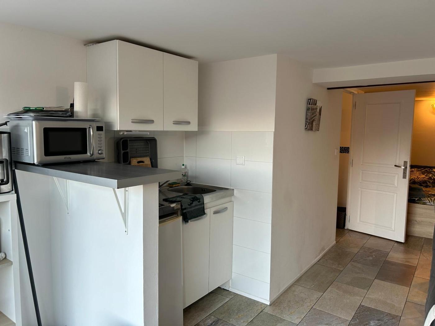 Appartement 1 Chambre. Cet appartement comprend une entrée privée, 1 salon, 1 chambre séparée, ainsi que 1 salle de bains avec douche et sèche-cheveux. La cuisine est équipée de plaques de cuisson, d’un réfrigérateur, d’un micro-ondes et d’ustensiles. Cet appartement est également doté d’un barbecue. Cet appartement dispose d’une terrasse avec vue sur le jardin, de murs insonorisés et d’une télévision à écran plat. Le logement comporte 2 lits. ;