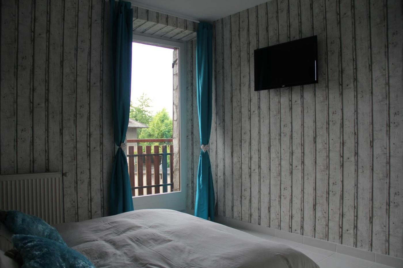 Chambre Double - Vue sur Montagne. The double room offers soundproof walls, parquet floors, a balcony with garden views as well as a private bathroom featuring a shower. The unit offers 1 bed. ;