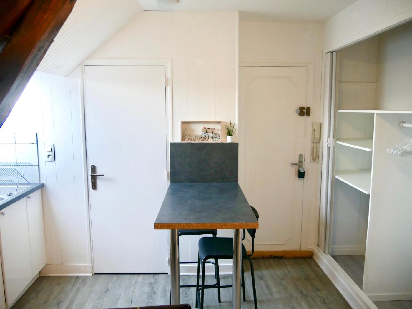 Appartement 1 Chambre. The apartments kitchen, which features a refrigerator and a microwave, is available for cooking and storing food. The apartment provides a washing machine, a coffee machine, a dining area, a wardrobe and a flat-screen TV. The unit offers 2 beds.
